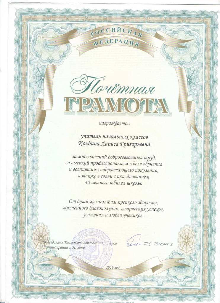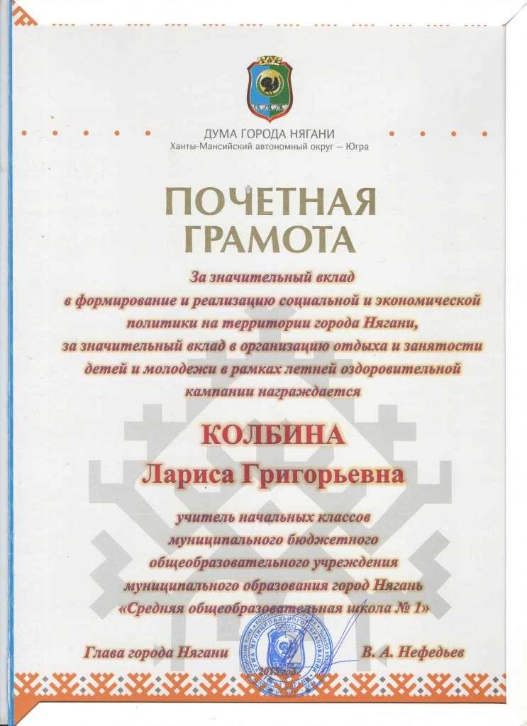 Колбина Лариса Григорьевна