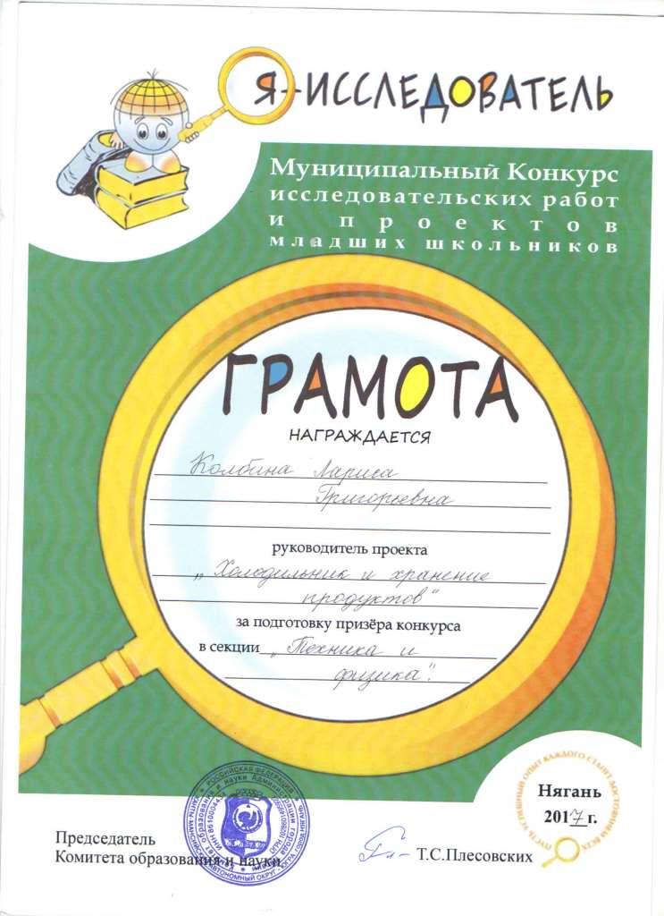 Грамота "Я-исследователь"