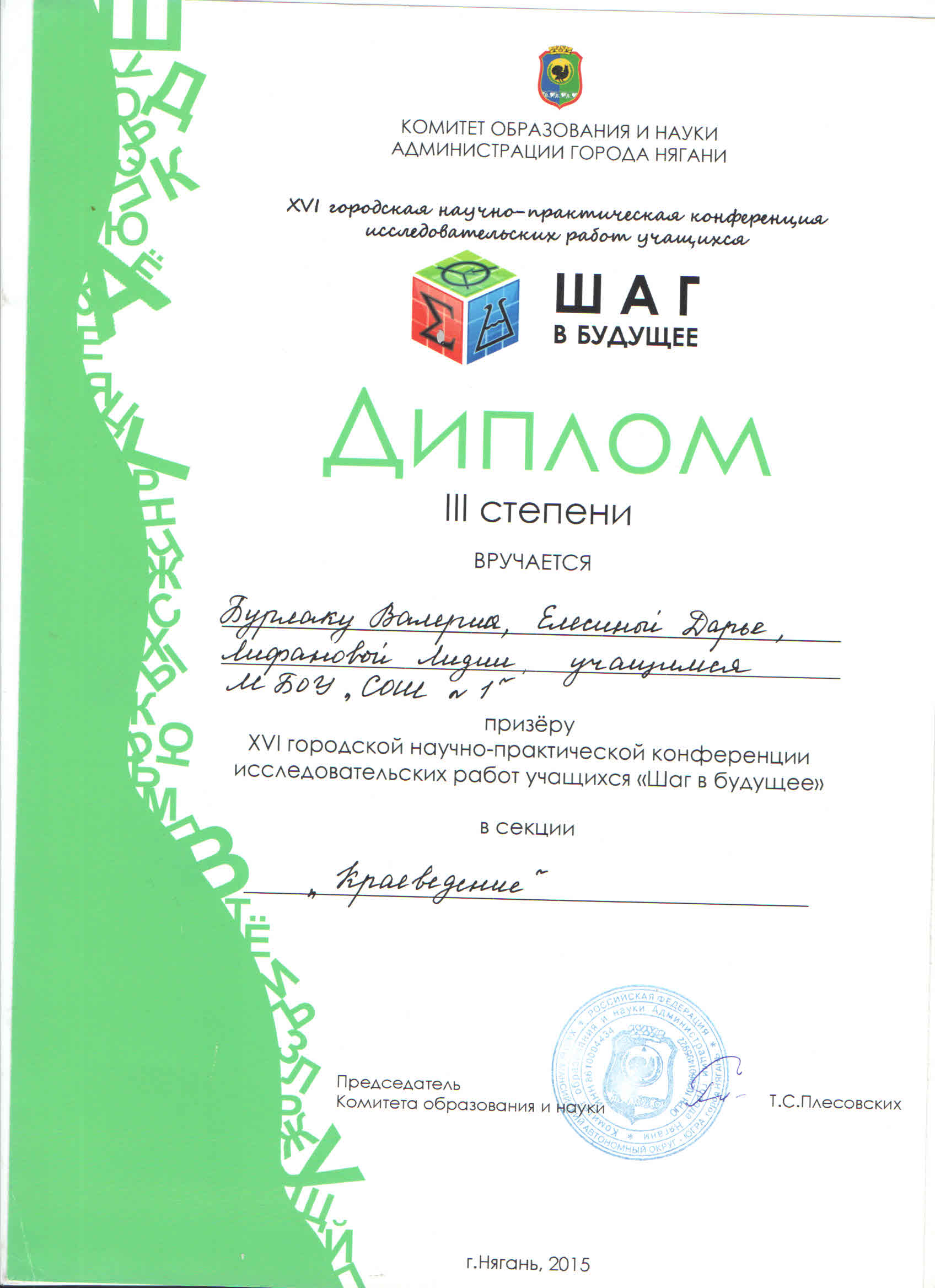 Диплом "Шаг в будущее"