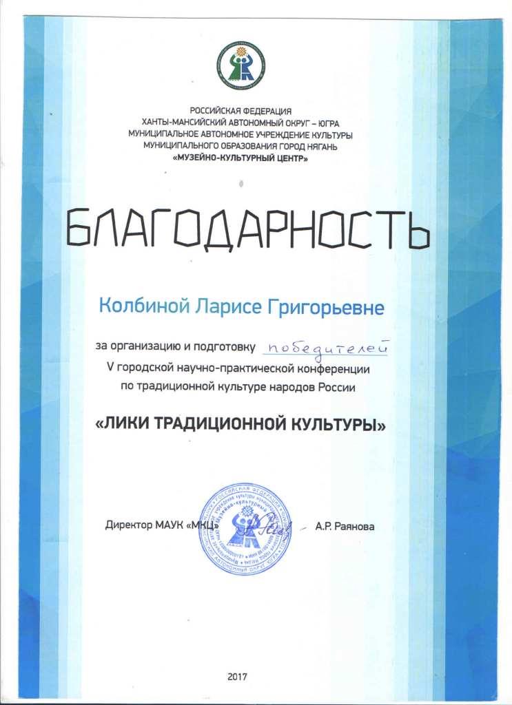 Благодарность "Лики традиционной культуры"